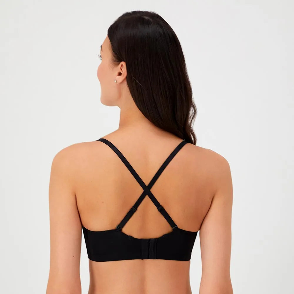 Descubre el confort y la versatilidad de este bra strapless con elásticos planos que no se marcan en la ropa exterior. Elaborado en microfibra de máxima suavidad, este sujetador ofrece una sensación de confort durante todo el día. Los tirantes removibles permiten usarlo en cualquier ocasión, ya sea cruzado, halter, con un solo tirante, strapless ó con tirantes como bra balconette. Este bra es perfecto para cualquier look.