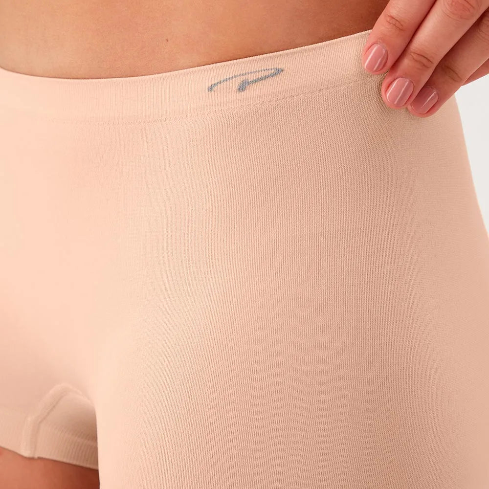 Descubre la comodidad y discreción de este bóxer o hot pants sin costuras que ofrece un ajuste perfecto y una sensación de suavidad durante todo el día. Diseñada para no marcarse en la ropa exterior, esta panty proporciona una apariencia elegante y sin líneas visibles en tus pantalones, vestidos o faldas. Con detalle de letra P de Playtex como un detalle de branding que asegura su autenticidad y calidad. El puente interior 100% algodón asegura mayor confort y frescura.